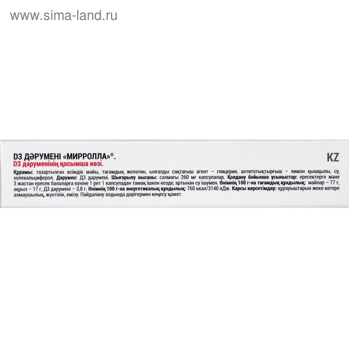 Витамин D3 Mirrolla, 30 капсул