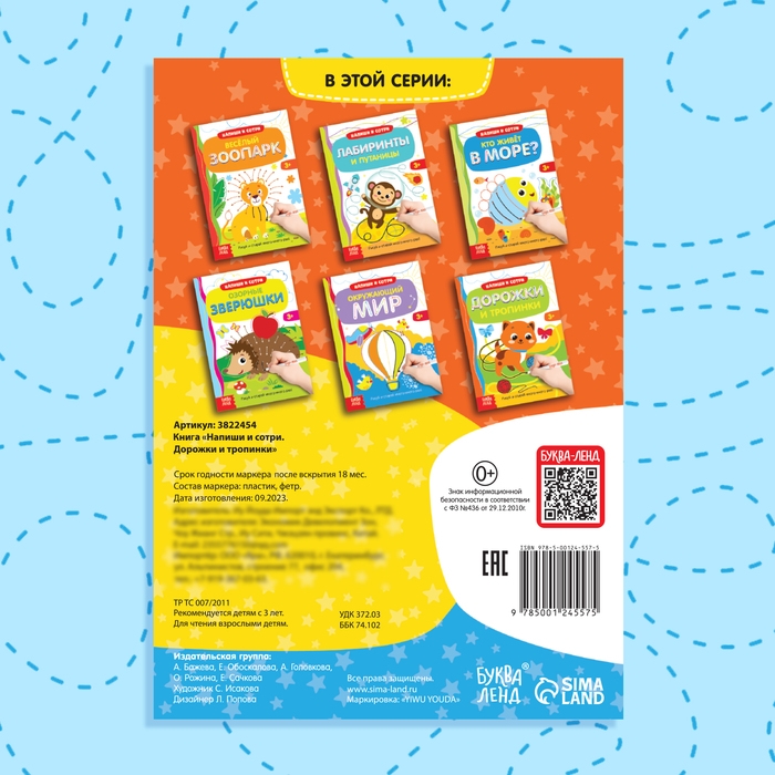 Многоразовая книжка с маркером «Дорожки и тропинки», 12 стр.