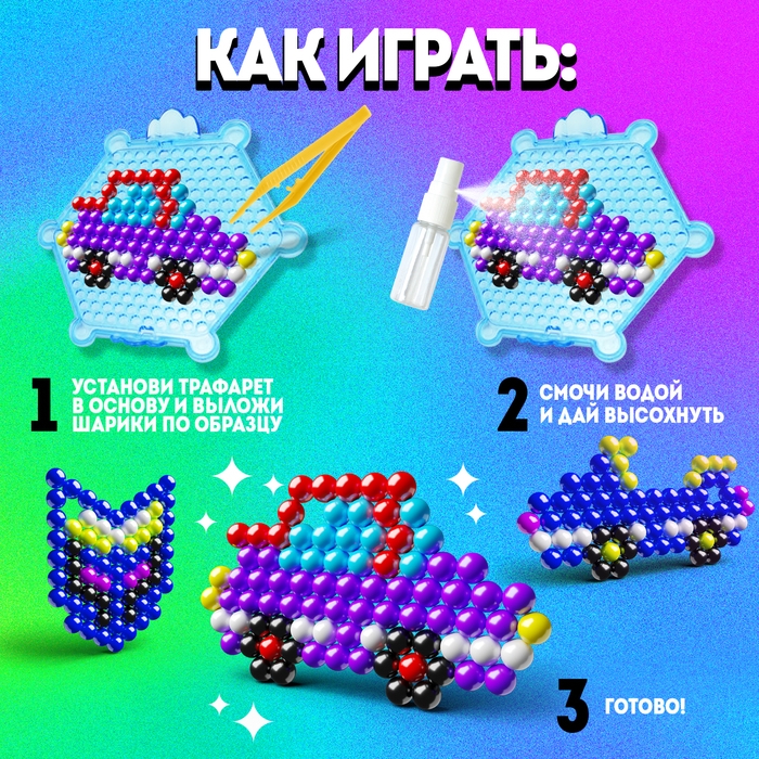 С аквамозаикой от торговой марки «Эврики» ребёнок соберёт объёмные фигурки из шариков-пикселей. Детали плотно скрепляются друг с другом. С поделками можно играть или носить с собой как брелоки.