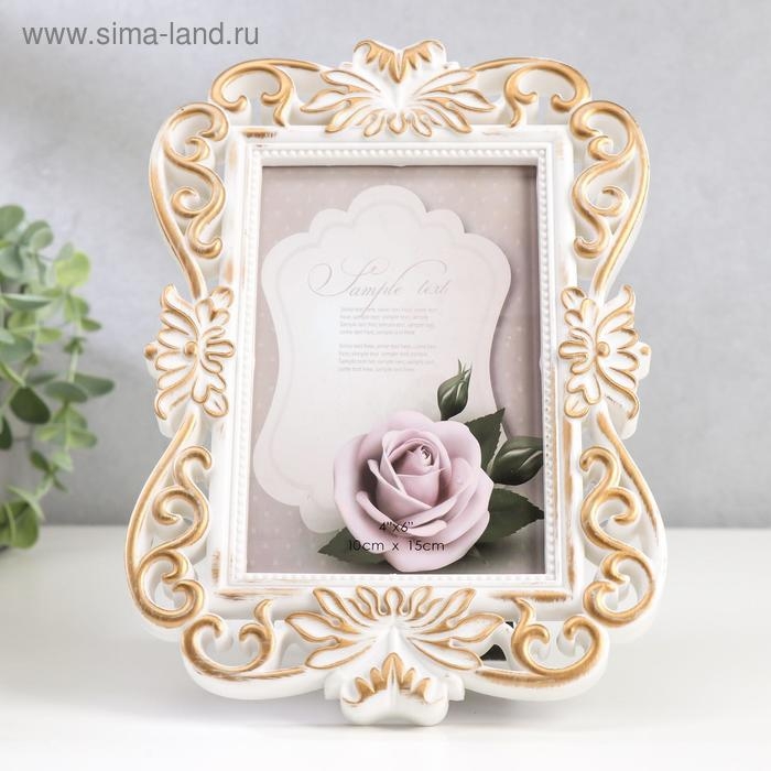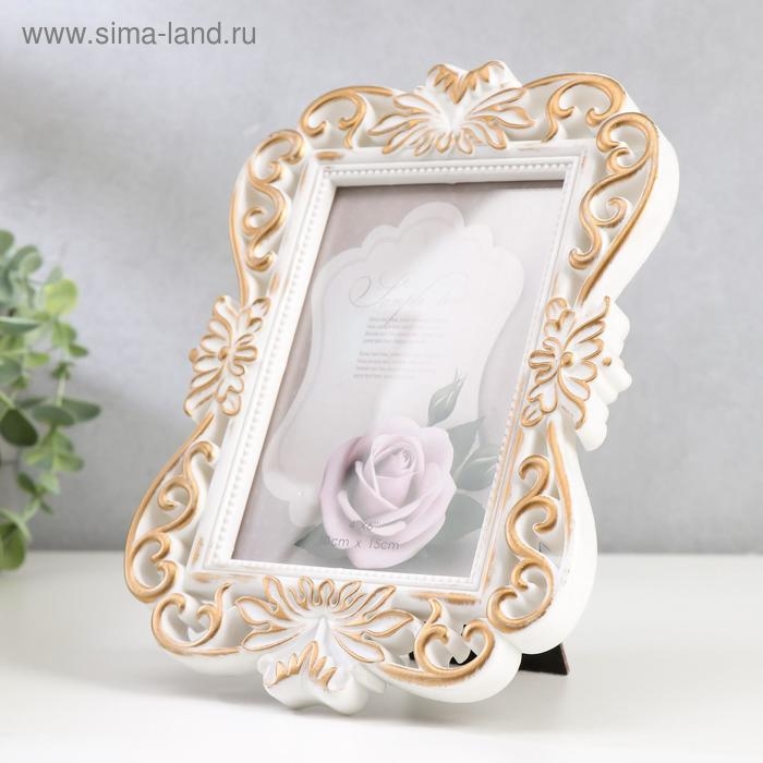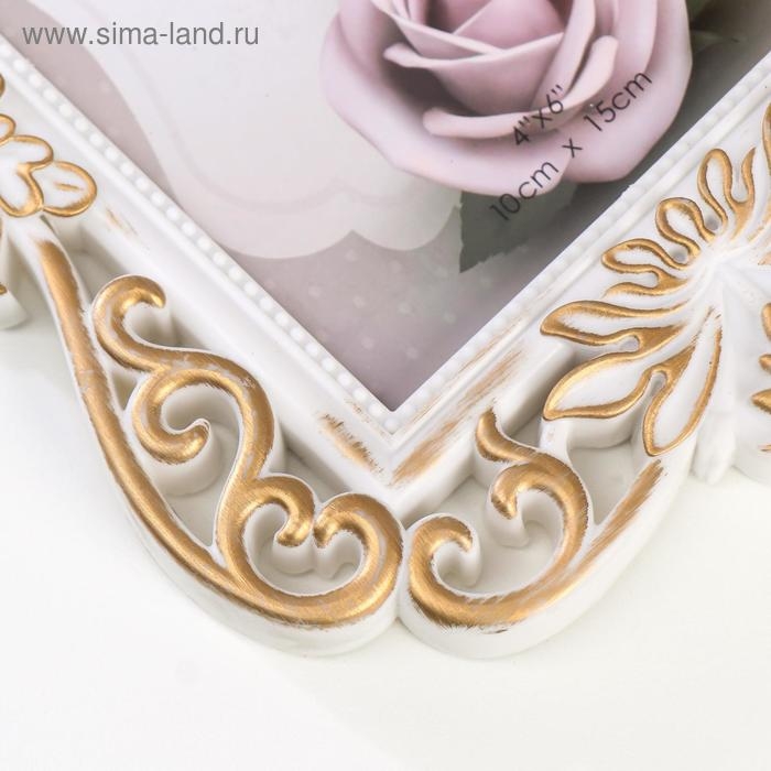 Фоторамка пластик 10х15 см "Фигурная" белая с золотом 22х16 см