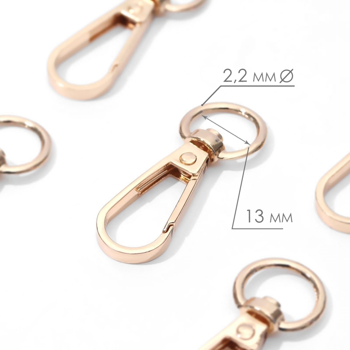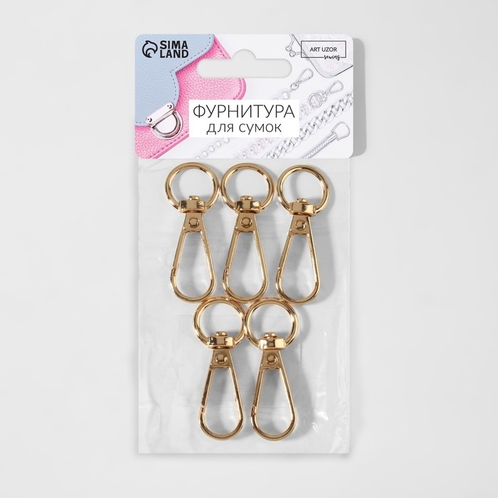 Карабин металлический, 48 × 18 мм / 13 × 2,2 мм, 5 шт, цвет золотой