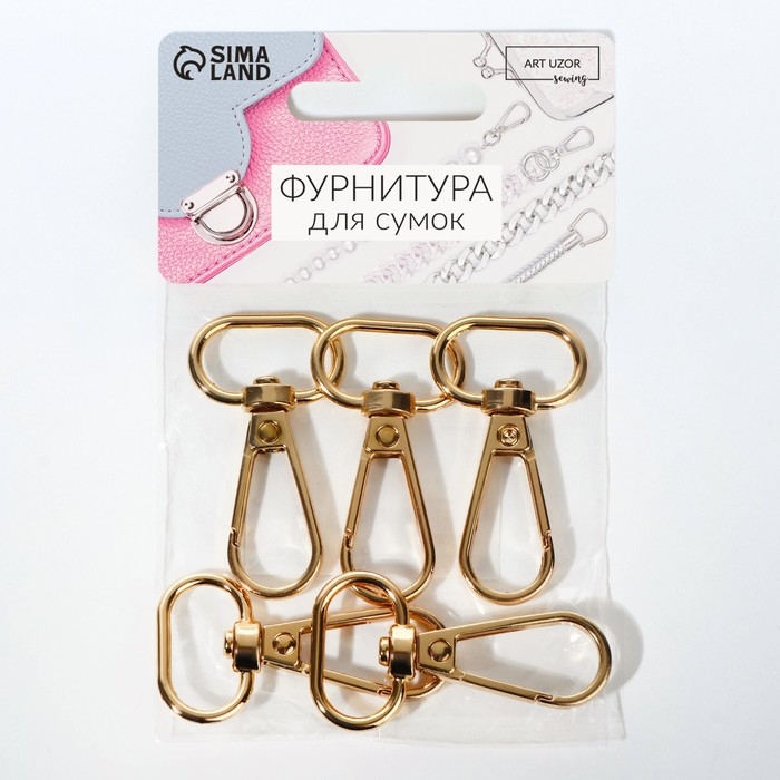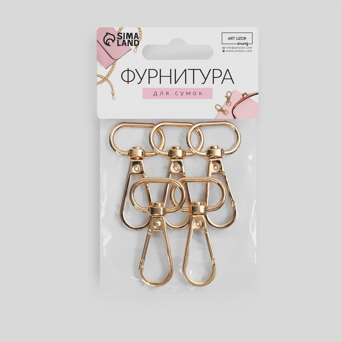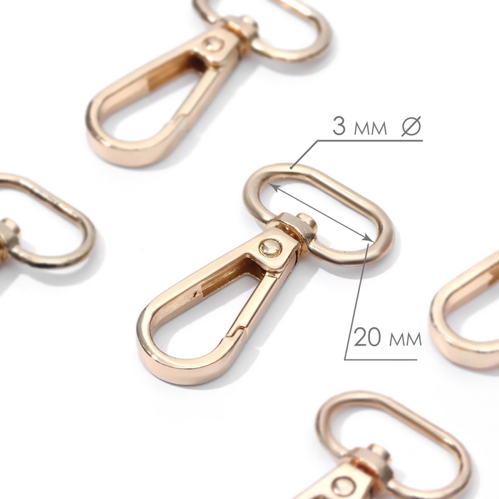 Карабин металлический, 46 × 25 мм / 20 × 3 мм, 5 шт, цвет золотой