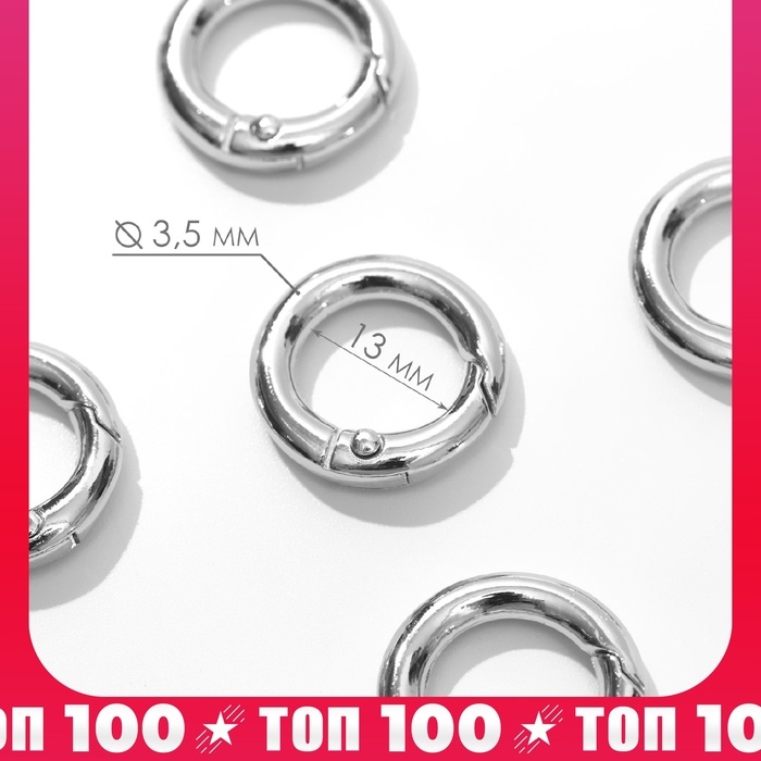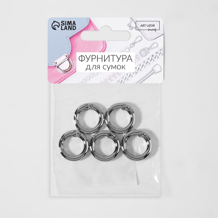 Кольцо-карабин, d = 13/20 мм, толщина - 3,5 мм, 5 шт, цвет серебряный