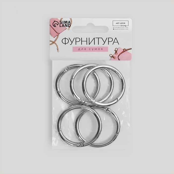 Кольцо-карабин, d = 32/40 мм, толщина - 4 мм, 5 шт, цвет серебряный
