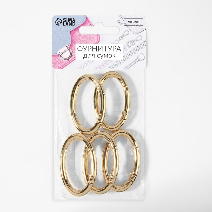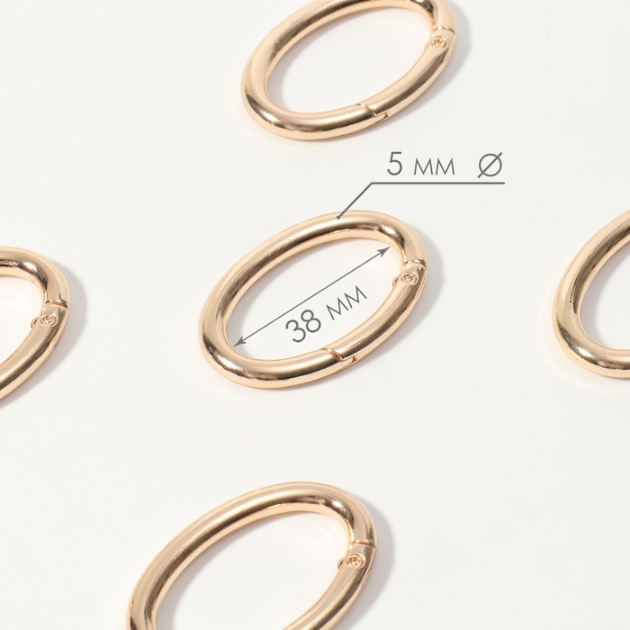 Овал-карабин, 4,8 × 2,9 см / 38 × 5 мм, 5 шт, цвет золотой