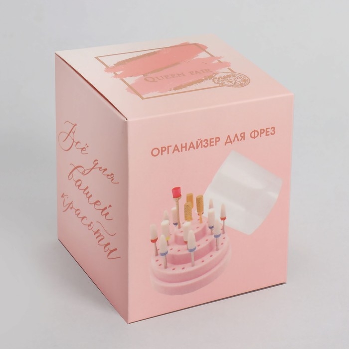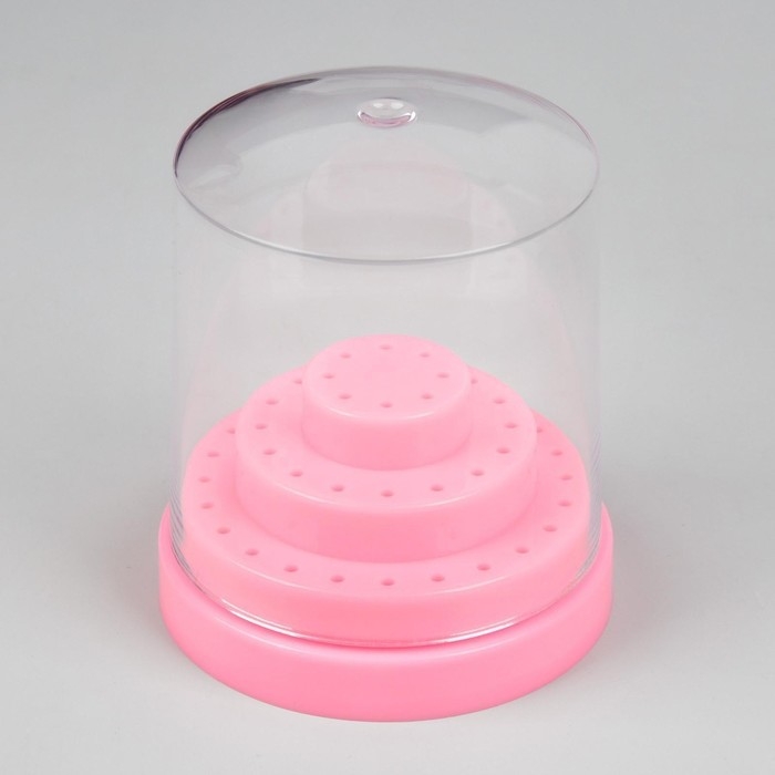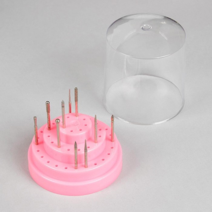 Подставка под фрезы, круглая, 48 отделений, d = 8 × 9,5 см, с крышкой, в картонной коробке, цвет розовый