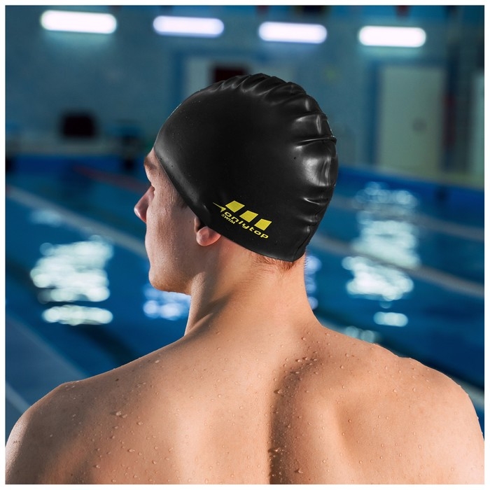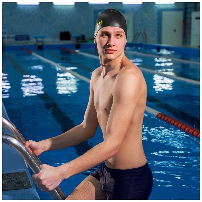 Шапочка для плавания взрослая ONLYTOP, силиконовая, обхват 54-60 см, цвет чёрный