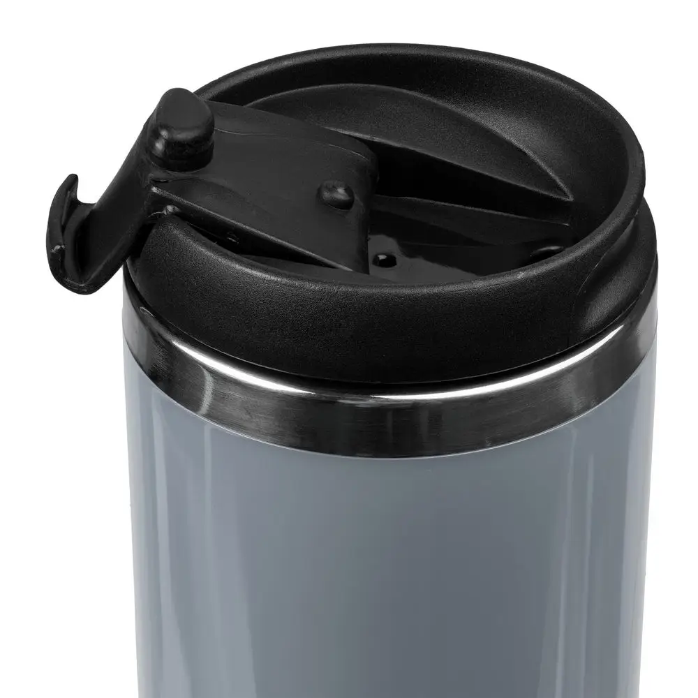 Двухслойная конструкция из пластика снаружи и пищевой нержавеющей стали внутри. Герметичная завинчивающаяся крышка с откидным клапаном для питья.