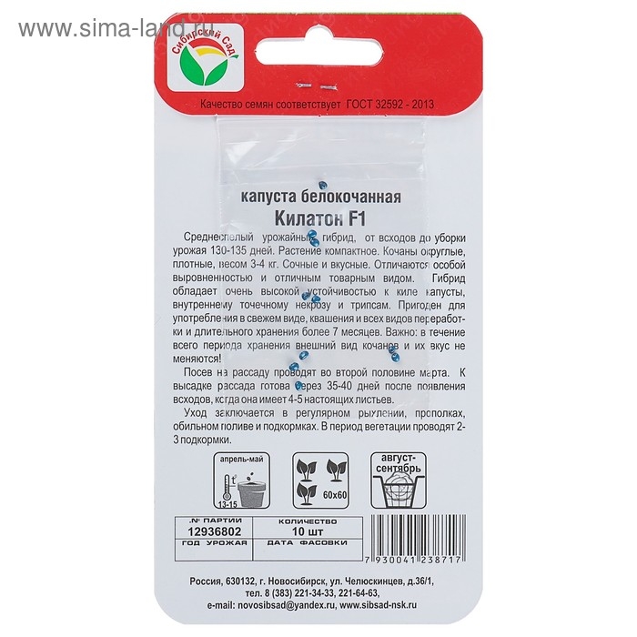 Семена Капусты белокочанной "Килатон", F1, 10 шт.