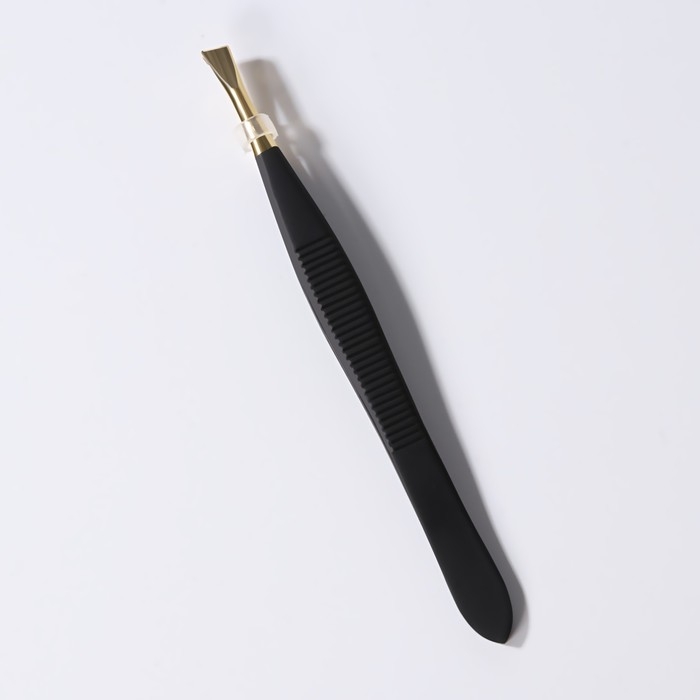 Пинцет скошенный, узкий, 8,5 см, цвет чёрный/золотистый