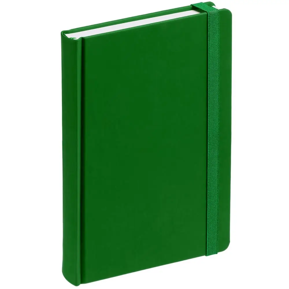 Ежедневник с твердой обложкой без поролона, выполнен из материала Soft Touch Ultra, зеленый FF, дополнен резинкой шириной 1 см, петлей-резинкой для ручки, капталом и ляссе ярко-зеленого цвета.