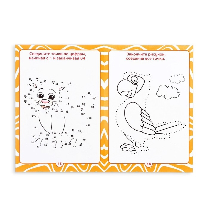 Листайте страницы книги и внимательно читайте задания. Готовьте карандаши, соединяйте точки, и у вас получится цельная картинка, которую можно раскрасить. Только будьте внимательны, сложность заданий повышается почти с каждой страницей книги.