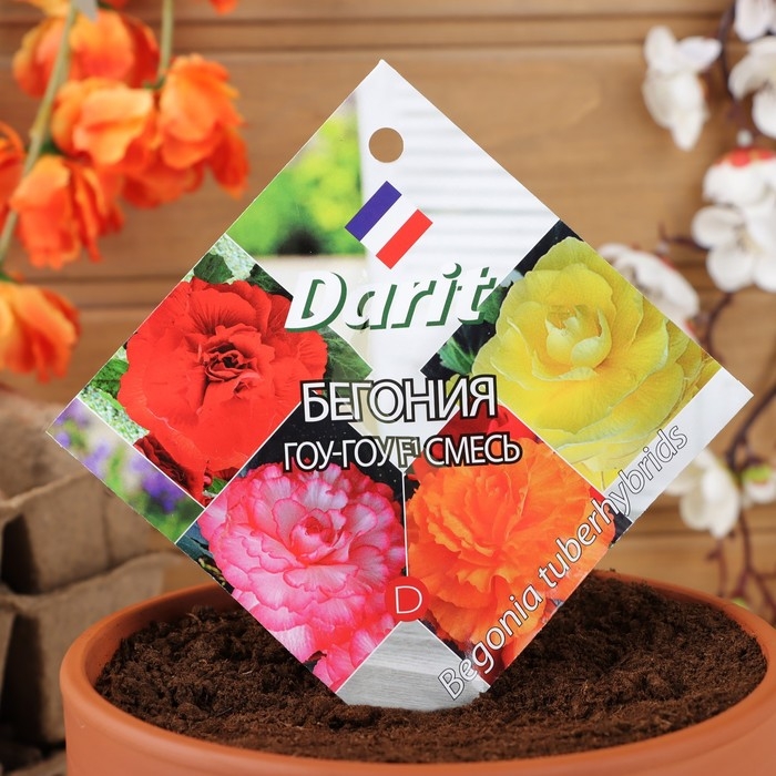 Особенности выращивания: Посев проводят начиная с ноября\декабря (для раннего цветения) и до февраля. Сеют поверхностно, не заглубляя драже, накрывают пленкой или стеклом, постоянно поддерживая влажность. Не допускать пересыхания оболочки. После появления первых всходов (через 12-16 дней при температуре 23°с) пленку убрать, поддерживая влажность. Через 6-8 недель сеянцы пикируют. На протяжении всего периода выращивания бегония требует влажности воздуха 70-80%. Хорошо отзывается на подкормку минеральными и органическими удобрениями. Полив умеренный, на солнечных местах обильный. Клубни можно сохранить до следующего сезона в горшке в прохладном месте с температурой 14-16°с, лишь изредка увлажняя почву.