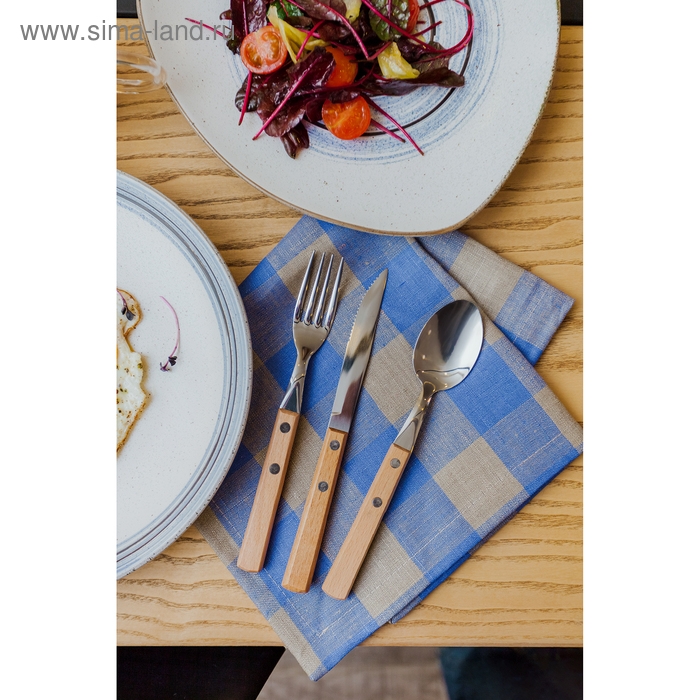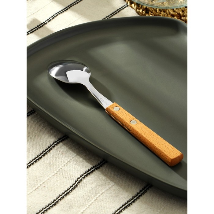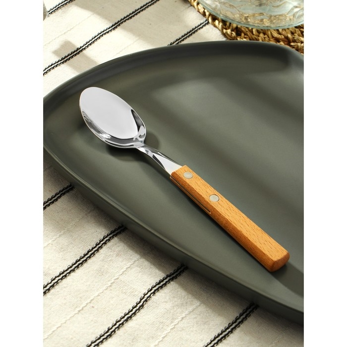 Ложка столовая из нержавеющей стали «Эко-стейк», длина 19,5 см, толщина 1,5 мм, деревянная ручка, цвет ручки МИКС