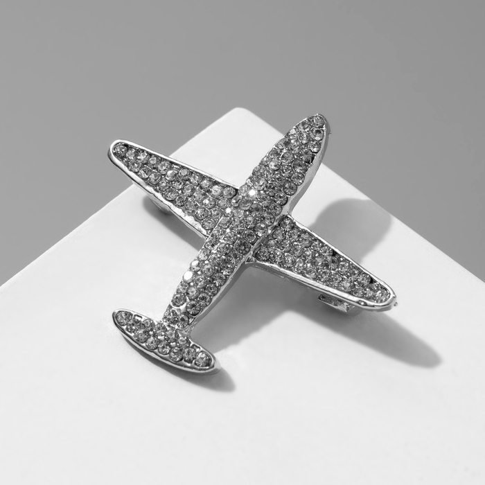 Брошь «Самолёт» туристический, цвет белый в серебре