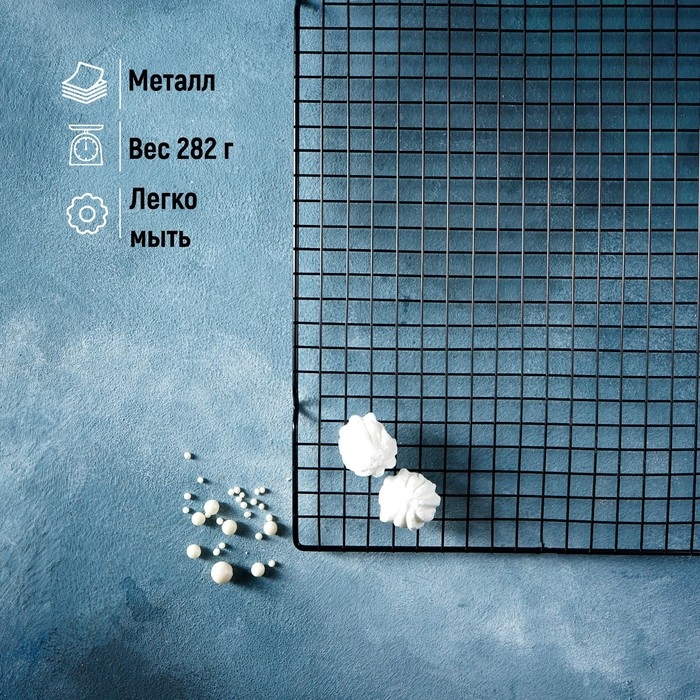 Решётка для глазирования и остывания кондитерских изделий KONFINETTA, 40×25×1,5 см, цвет чёрный