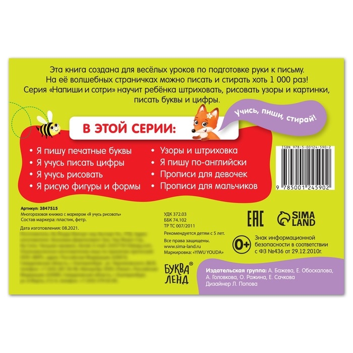 - Многоразовое использование страниц позволяет ребёнку исправлять ошибки, что развивает терпение и внимательность.