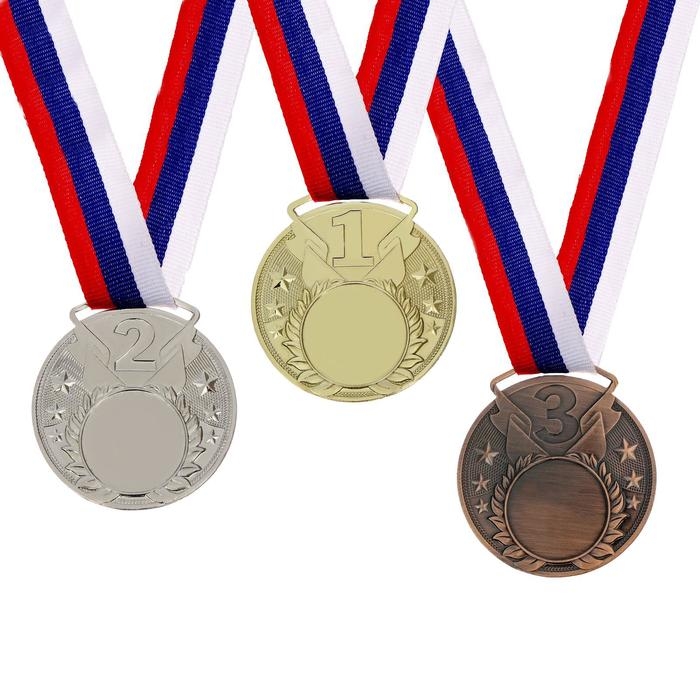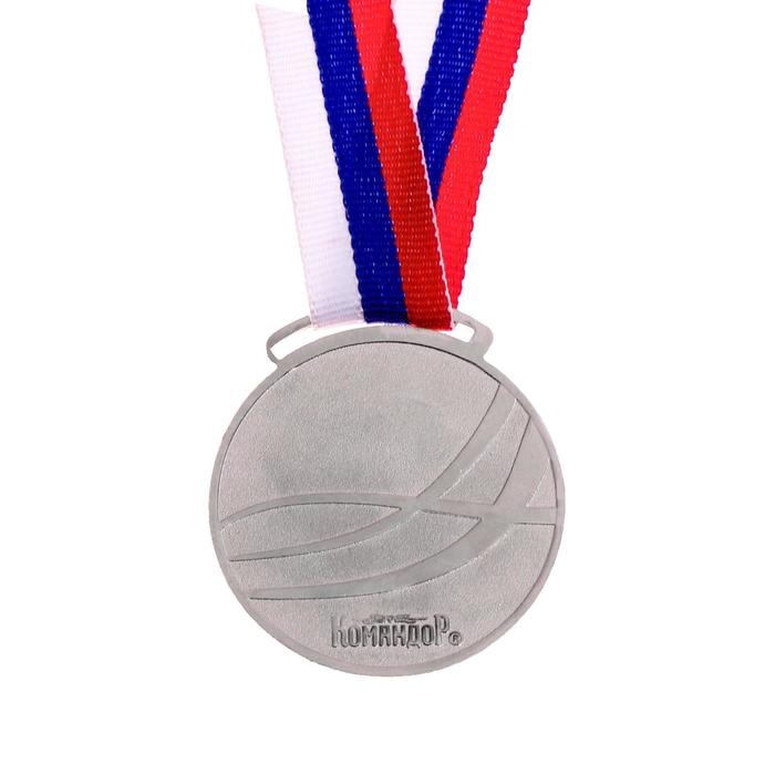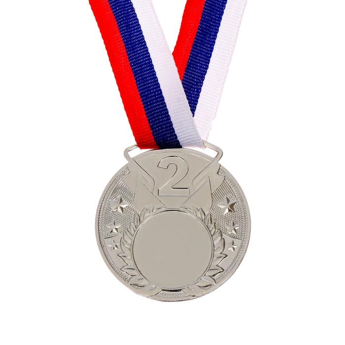 Медаль призовая под нанесение 064, d= 5 см. Цвет серебро. С лентой
