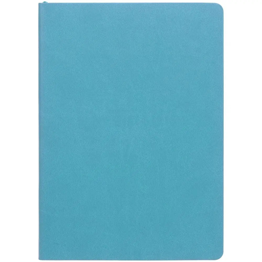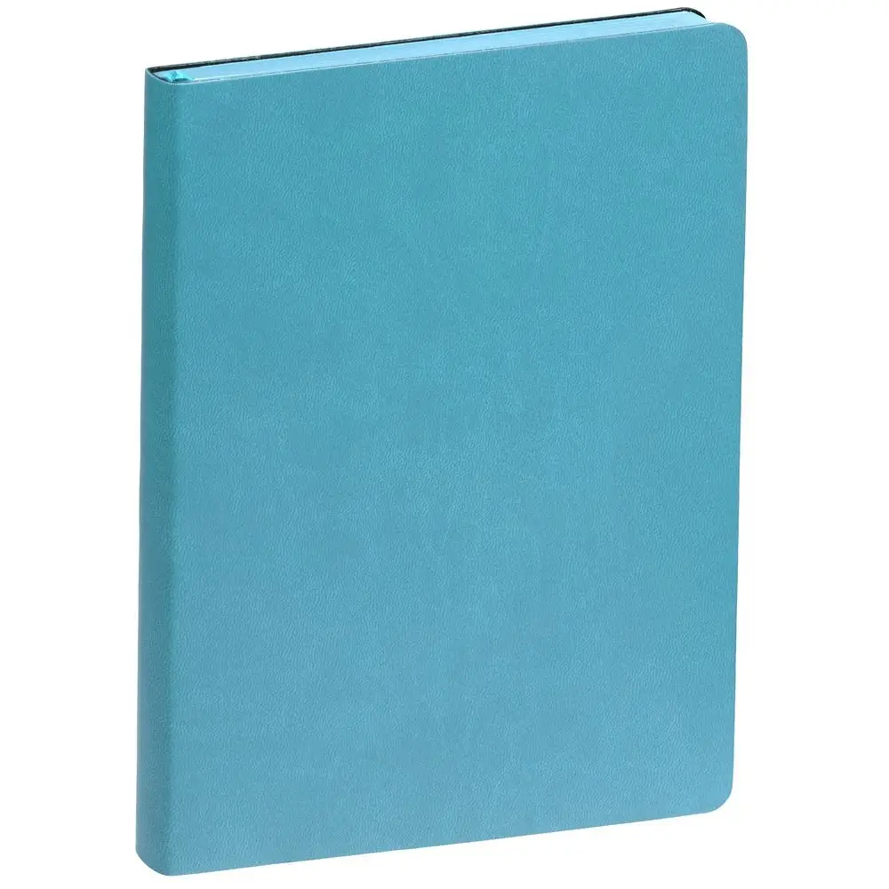 Ежедневник с гибкой обложкой, выполнен из материала Latte, голубой, дополнен ляссе в цвет обложки.