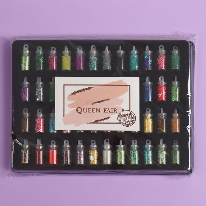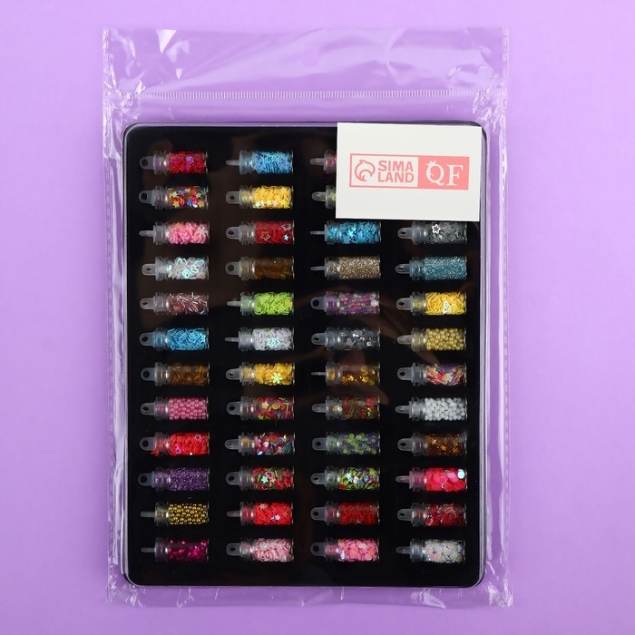 Набор для декора ногтей, в пластиковом органайзере, набор 36 баночек, разноцветные