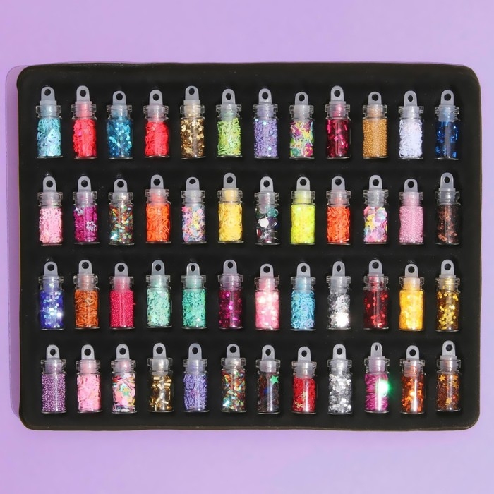 Набор для декора ногтей, в пластиковом органайзере, набор 48 бутылочек, разноцветные