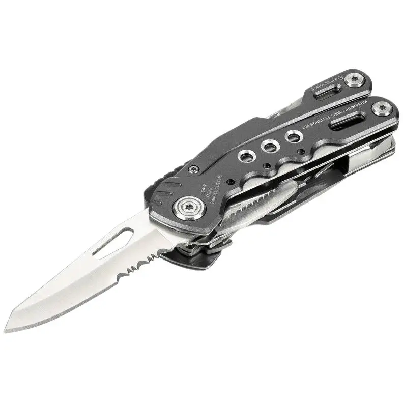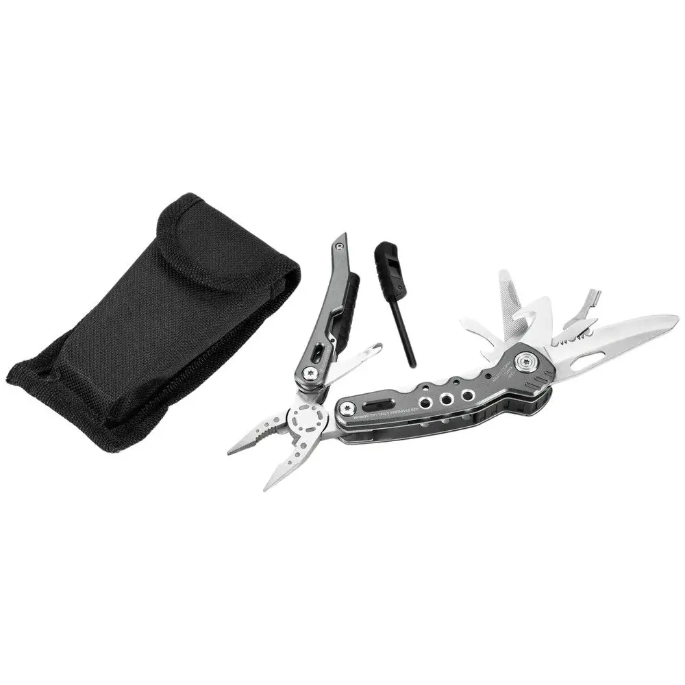 Вы можете положиться на мультитул Fire Tool 14 на все 100%! В нем есть все, что может понадобиться в походе: от сигнального свистка до ножа из высококачественной стали. Благодаря эргономичной конструкции инструмент подходит как для правши, так и для левши.14 функций: