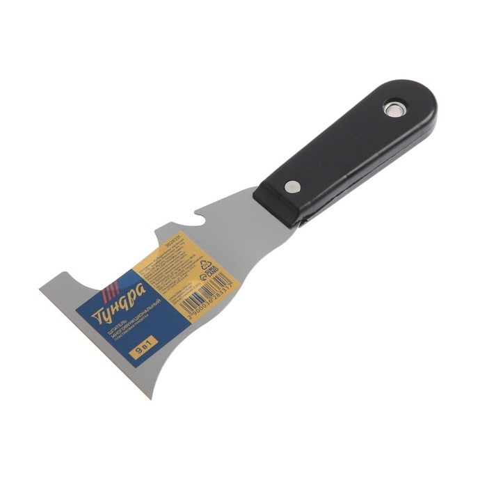 Шпатель многофункциональный ТУНДРА, 9 в 1, нержавеющая сталь, пластиковая рукоятка