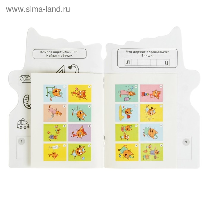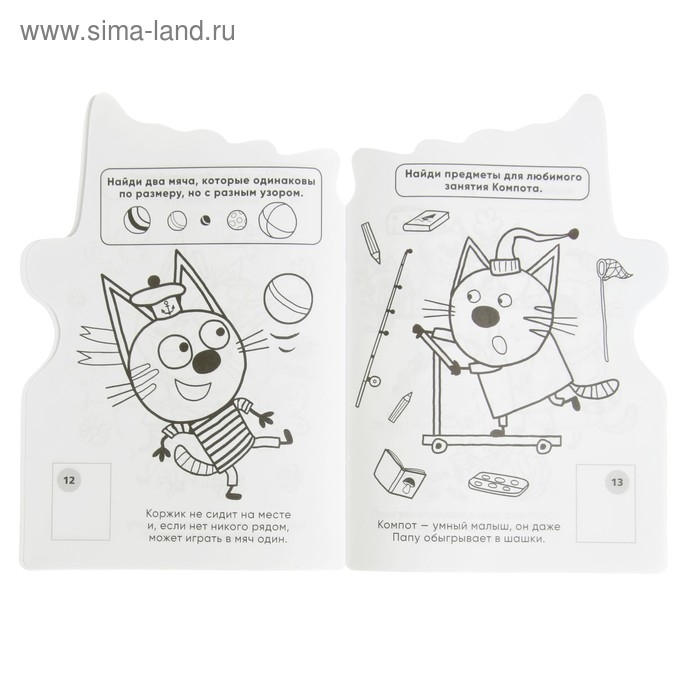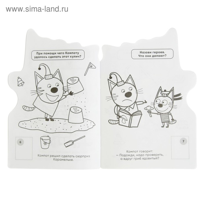 Развивающая раскраска с вырубкой в виде персонажа и многоразовыми наклейками «Три кота»