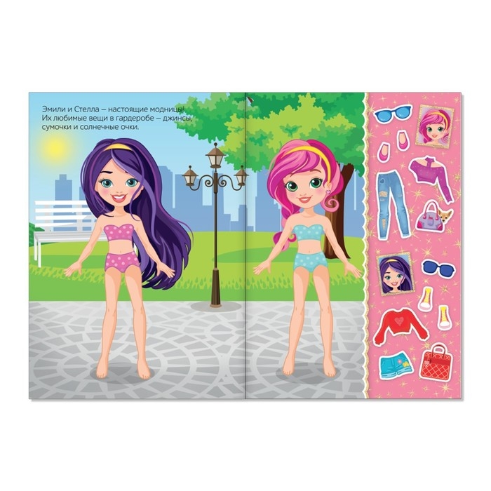 В книге ребёнка ждёт более 100 цветных наклеек с одеждой и аксессуарами для кукол.