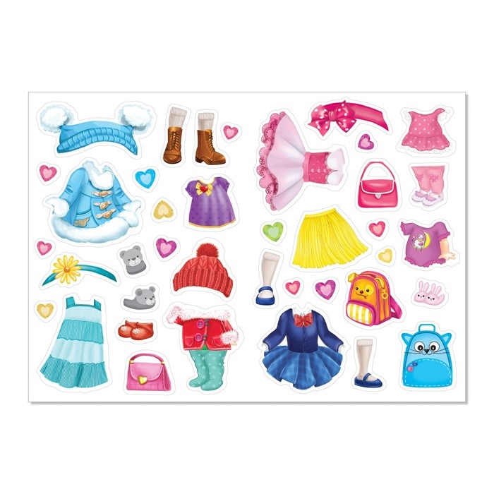 В книге ребёнка ждёт более 100 цветных наклеек с одеждой и аксессуарами для кукол.