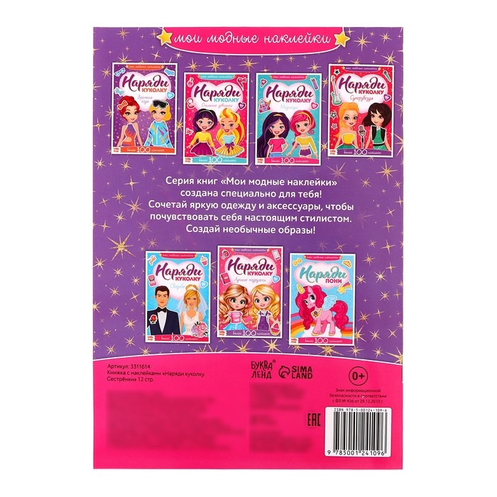 Серия книг «Наряди куколку» создана специально для юных модниц! Ребёнок сможет сочетать яркую одежду и аксессуары и почувствует себя настоящим стилистом. Создавайте вместе с ребёнком самые необычные образы для сестрёнок на разные времена года.