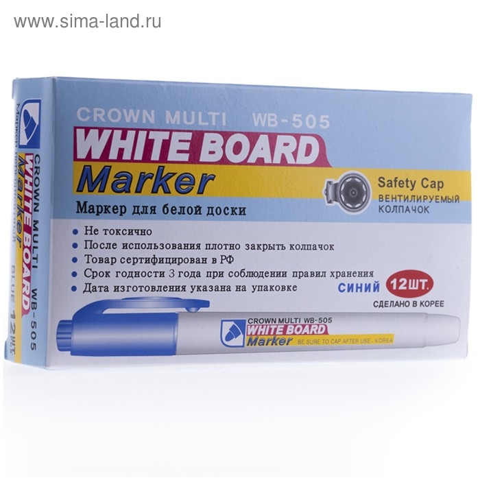 Маркер для белых досок 2.0 мм, Crown Multi Board Slim, пулевидный, синий