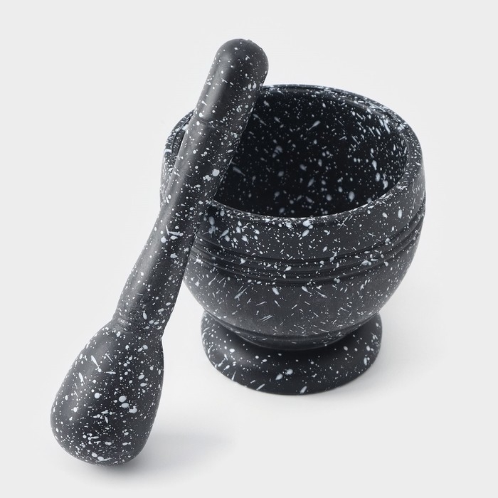 Ступка с пестиком Доляна «Чёрный мрамор», d=10 см, цвет чёрный