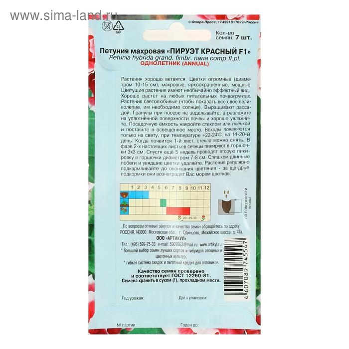 Семена цветов Петуния крупноцветковая махровая «Пируэт красный» F1, О, 7 шт.
