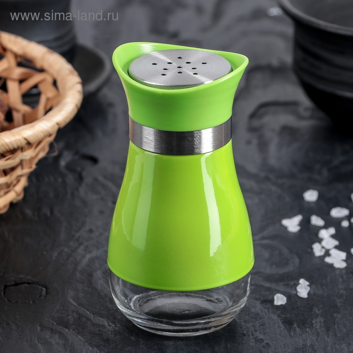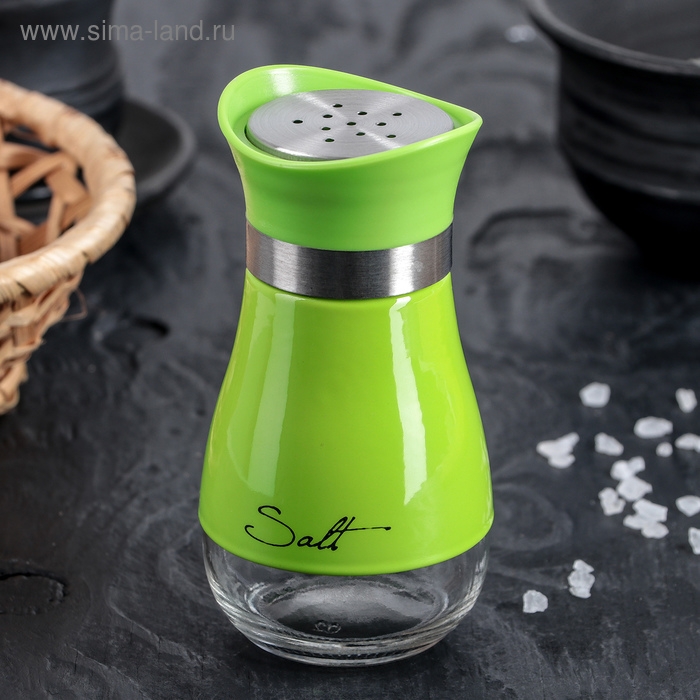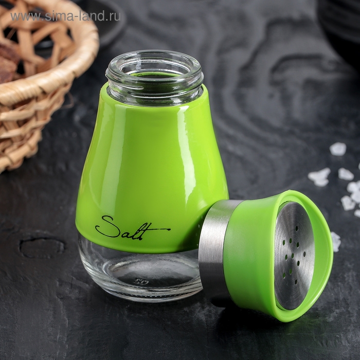 Солонка стеклянная «Сияние», 5,5×5×11 см, цвет зелёный, надписи МИКС