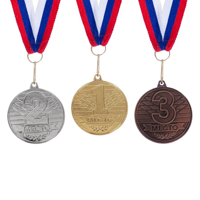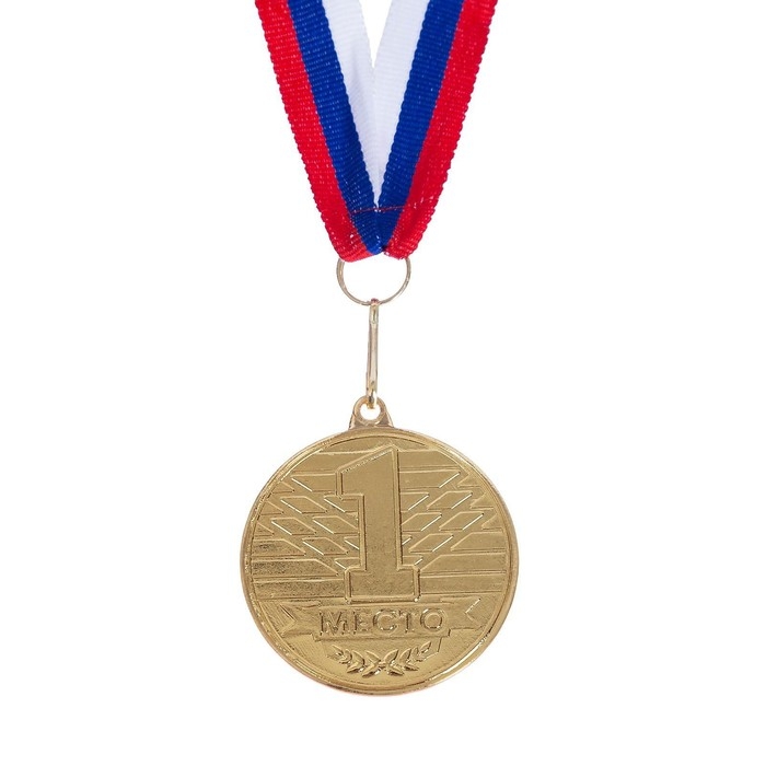 Медаль призовая 013, d= 5 см. 1 место, триколор. Цвет золото. С лентой