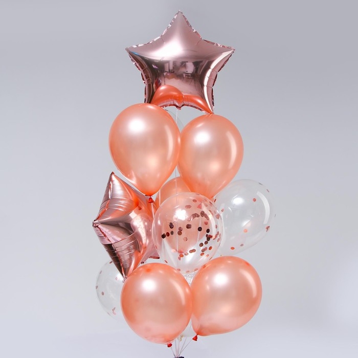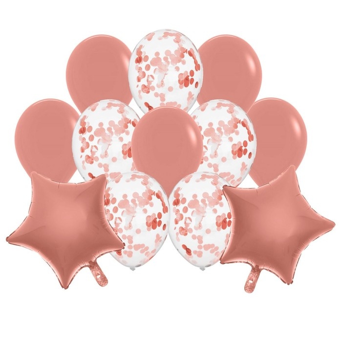 Набор воздушных шаров «Праздничный», конфетти, фольга, латекс, цвет розовое золото, 12 шт.