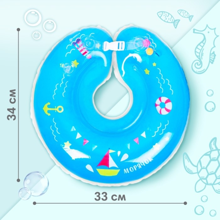 Круг для плавания новорожденных на шею «Морячок», надувной, с ручками, цвет голубой, Крошка Я