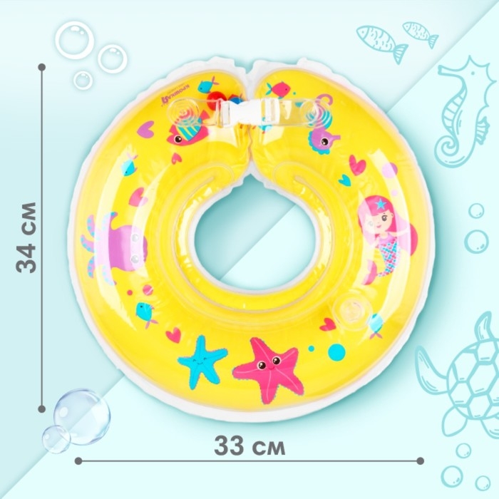 Круг для плавания новорожденных на шею «Русалочки», надувной, с ручками, цвет желтый, Крошка Я