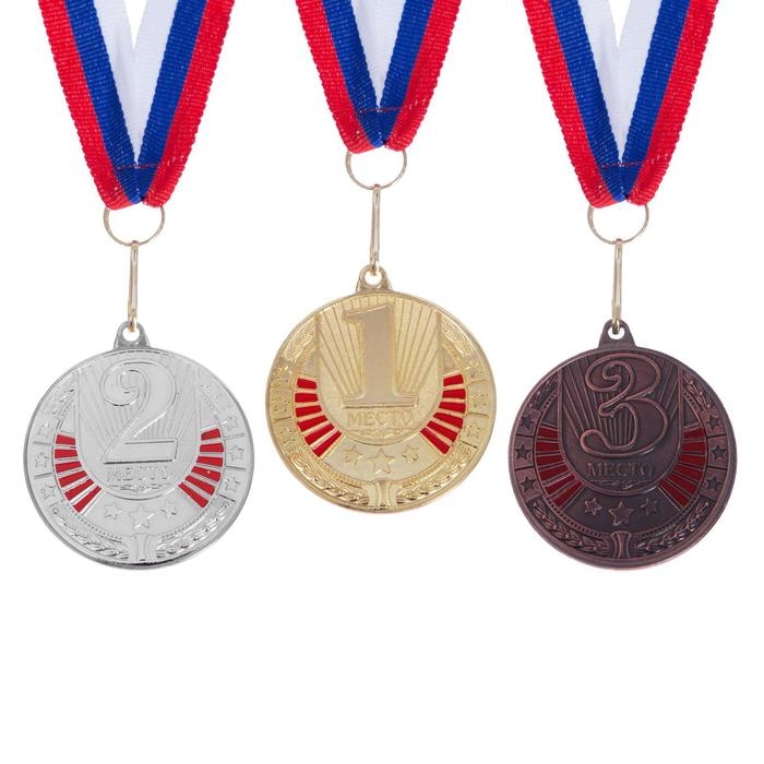 Медаль призовая 013, d= 5 см. 1 место, триколор. Цвет золото. С лентой