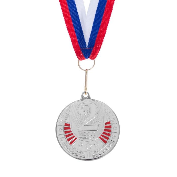 Медаль призовая 013, d= 5 см. 2 место, триколор. Цвет серебро. С лентой