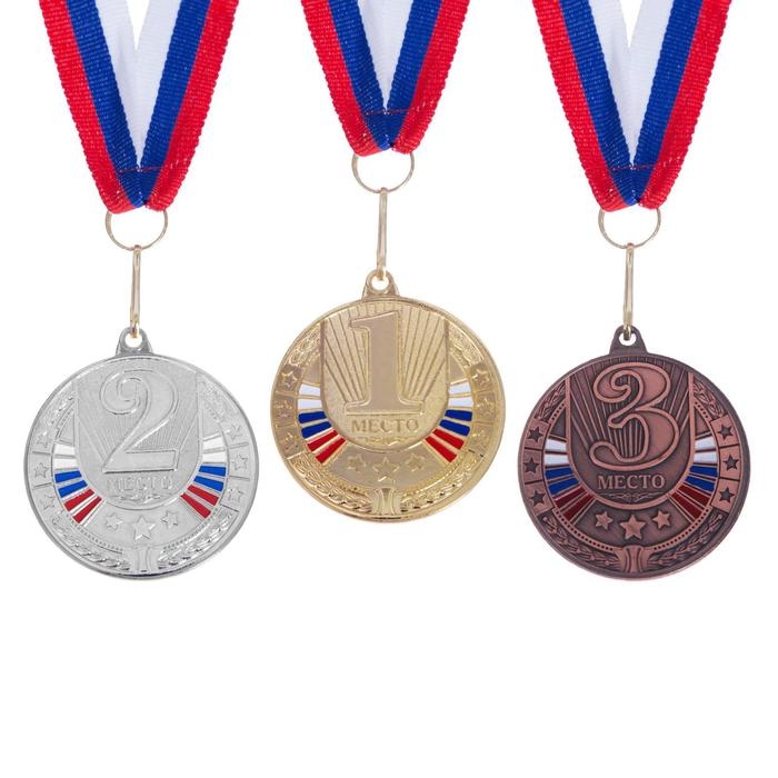 Медаль призовая 013, d= 5 см. 1 место, триколор. Цвет золото. С лентой
