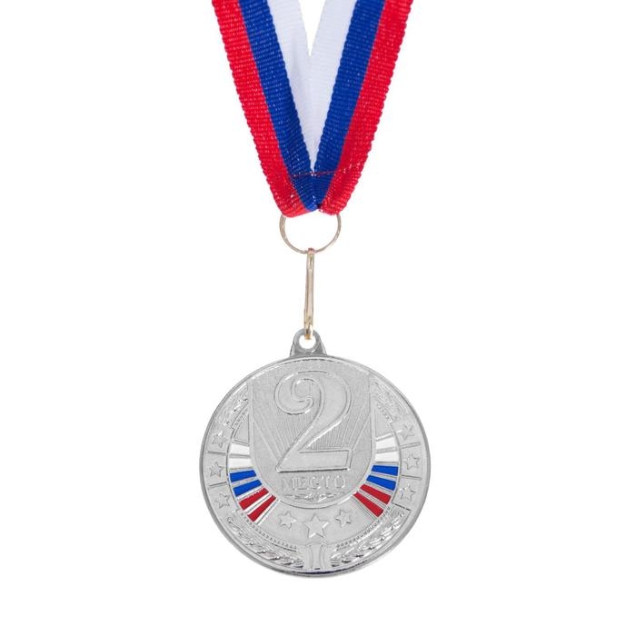 Медаль призовая 014, d= 7 см. 2 место, триколор. Цвет серебро. С лентой
