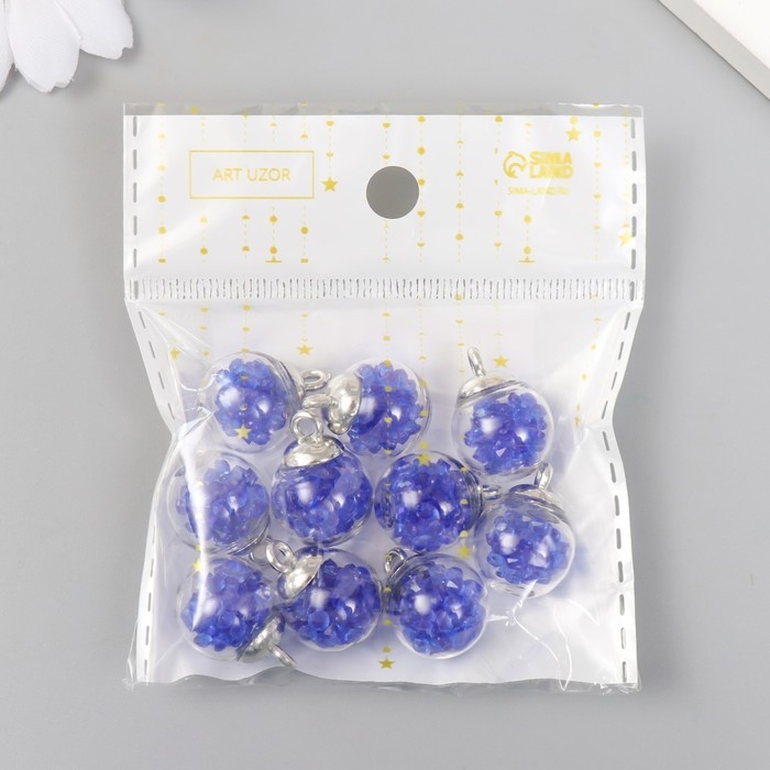 Подвеска декоративная для творчества стекло "Шар - камешки" синяя d=1,6 см набор 10 шт