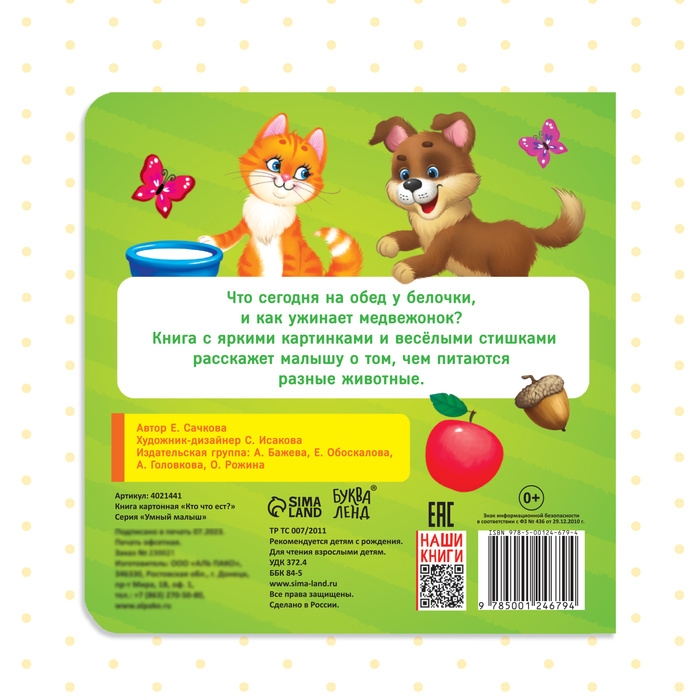 Картонная книга «Кто что ест», 10 стр.