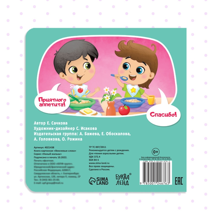 Картонная книга «Вежливые слова» — это обучающее пособие для малышей, которое помогает изучить важные фразы вежливости и ситуации их использования. Яркие иллюстрации привлекают внимание, а крепкий картон делает книгу удобной для маленьких ручек.