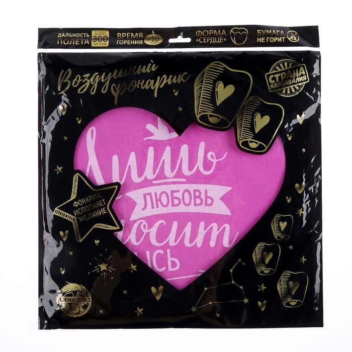 Небесный фонарик «Любовь», сердце, цвета МИКС