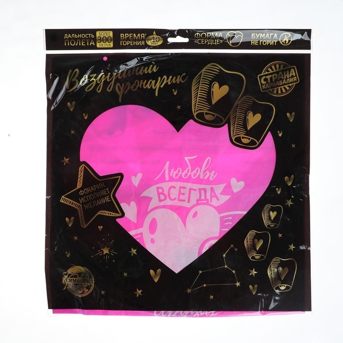 Небесный фонарик «Любовь в сердцах», сердце цвета МИКС
