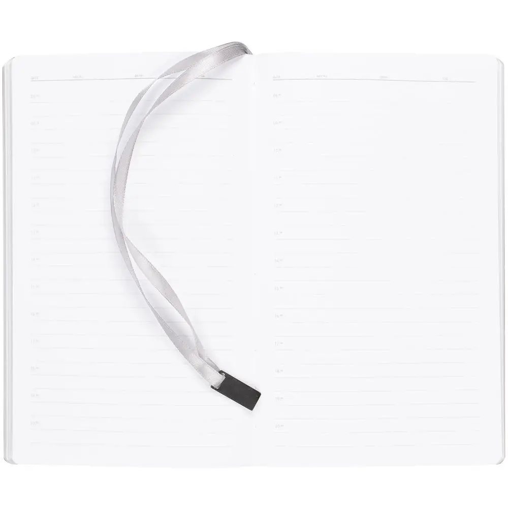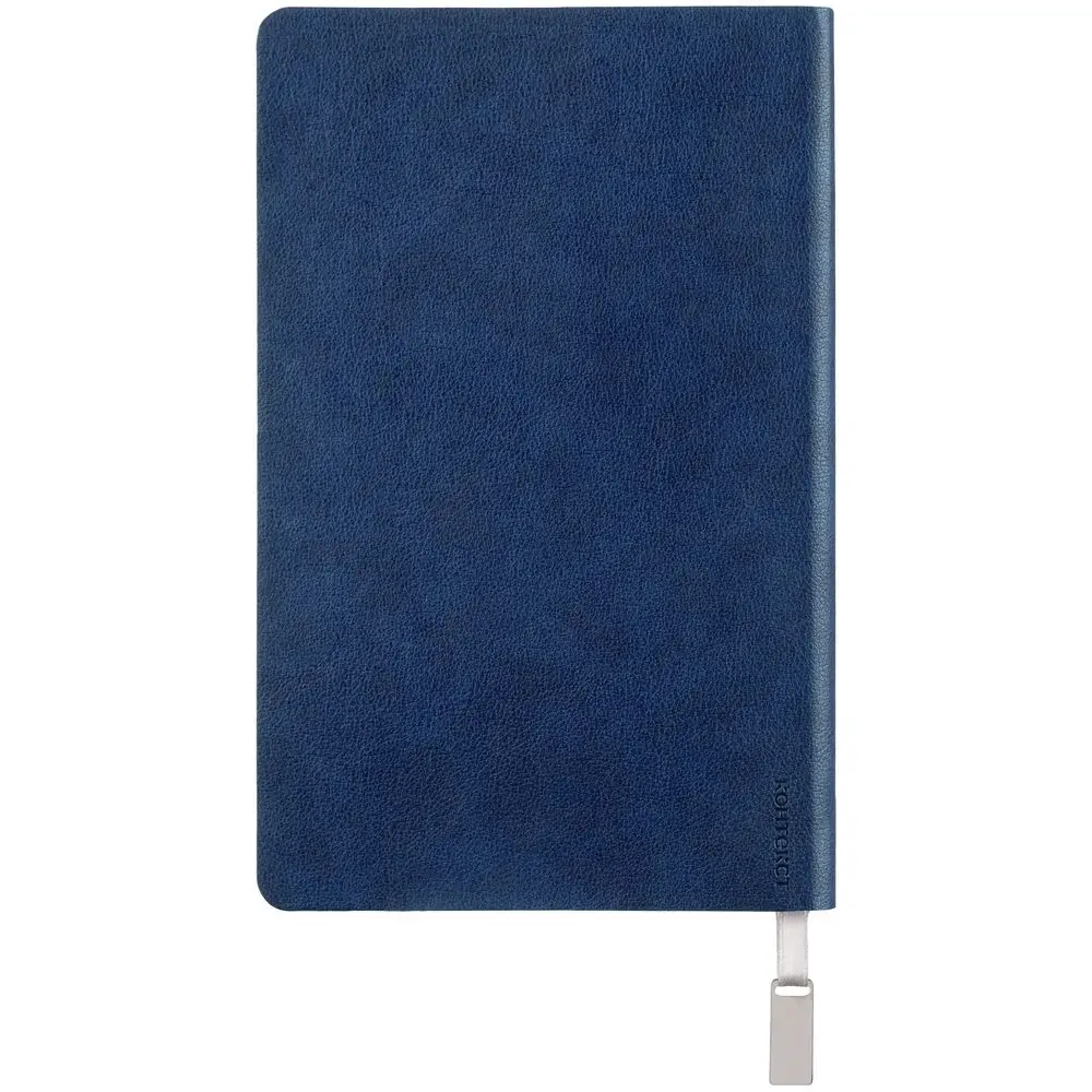 Ежедневник с гибкой обложкой, выполнен из материала Petrus, синий НН, дополнен серым ляссе с металлическим шильдиком.