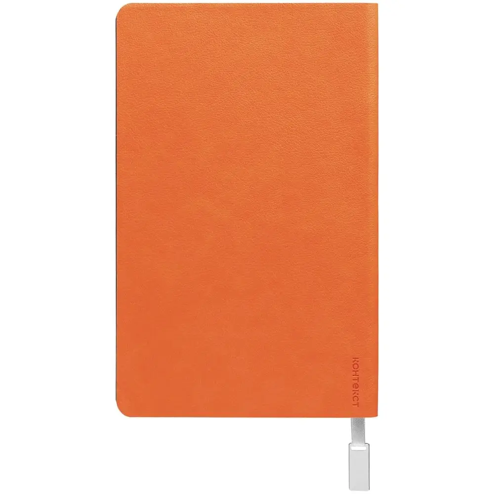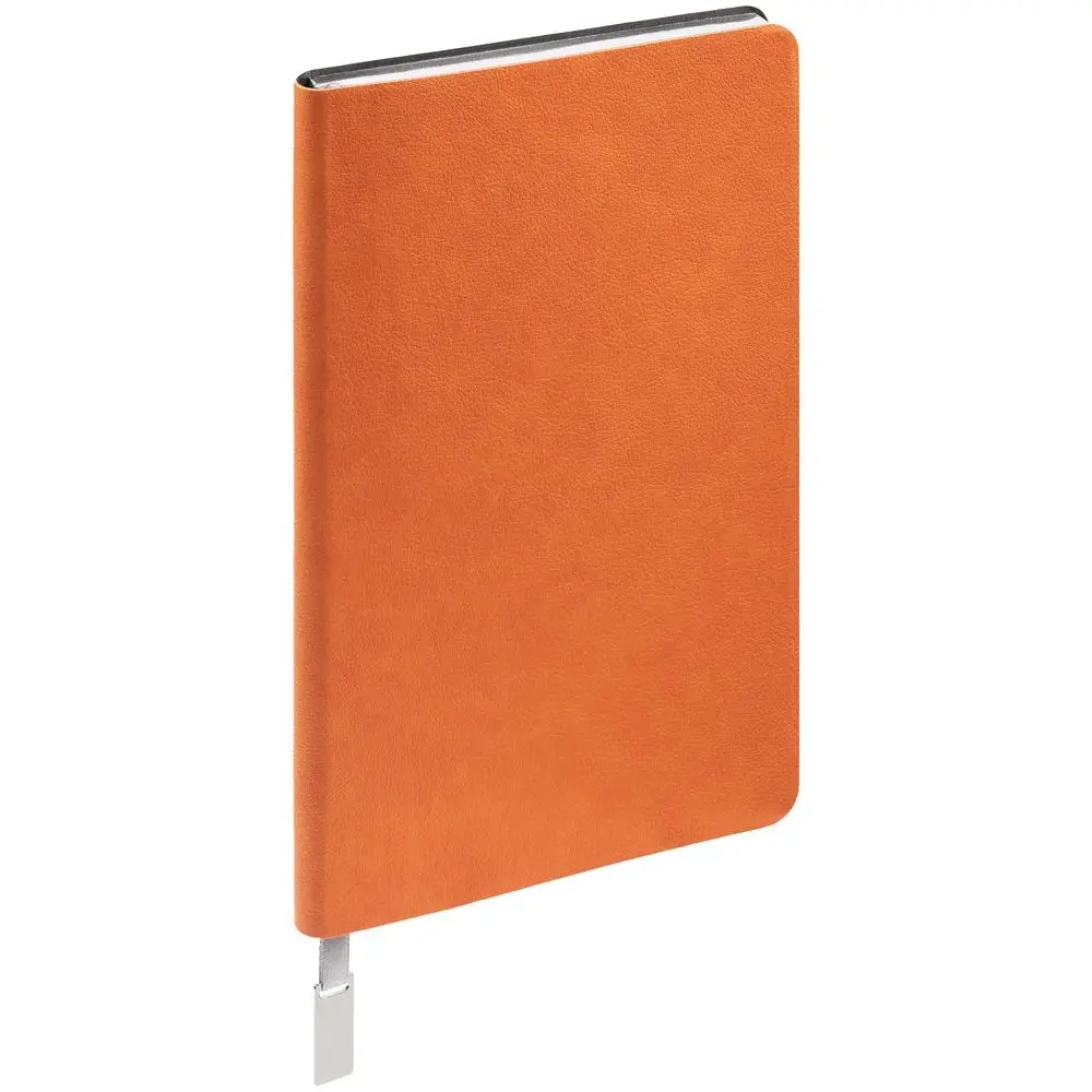 Ежедневник с гибкой обложкой, выполнен из материала Petrus, оранжевый ОО, дополнен серым ляссе с металлическим шильдиком.